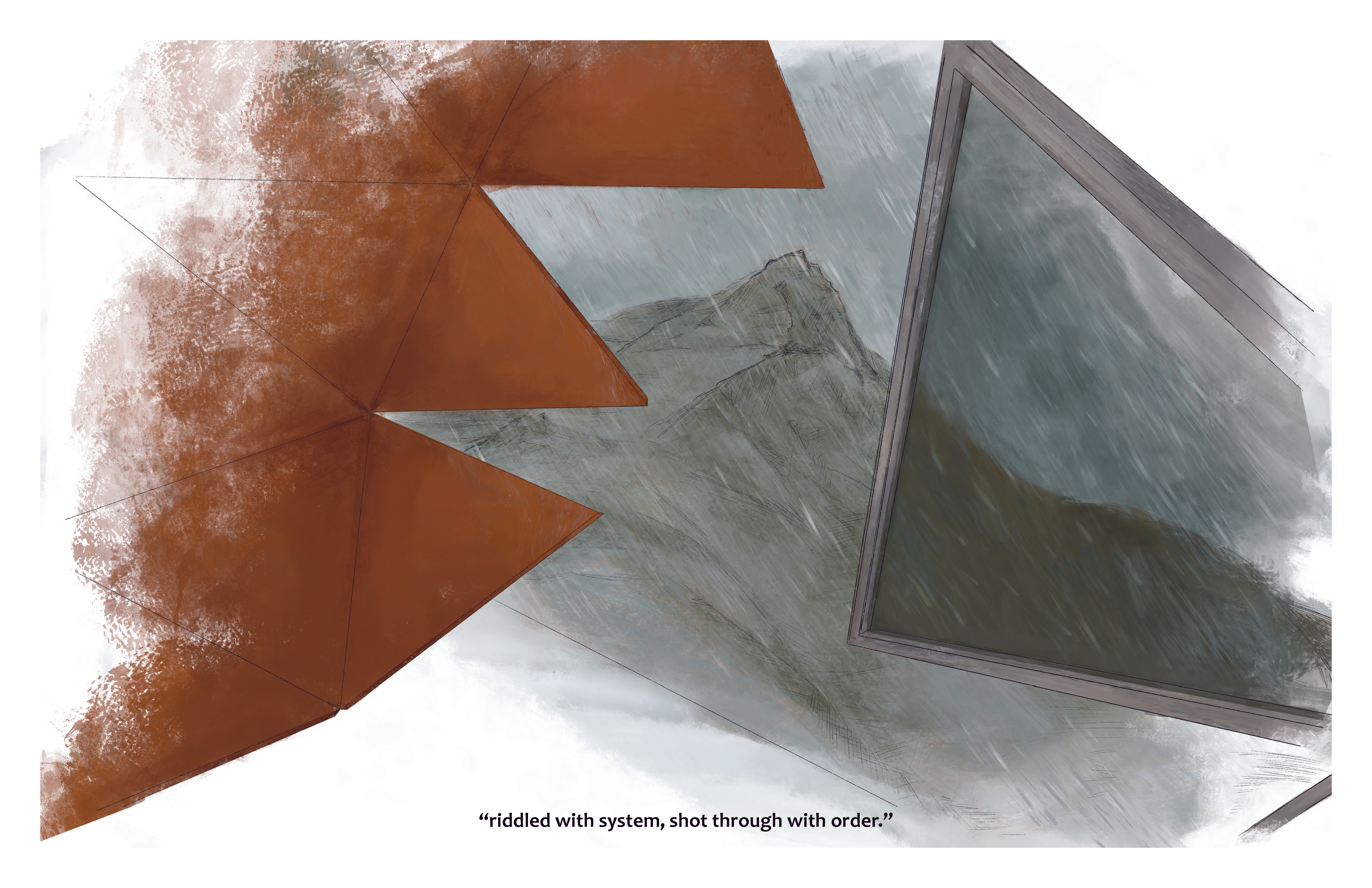 The project acts as a gateway that frames Triple-Divide Peak, a shelter for hikers passing by, and a funnel to sequester rainwater before it travels to the oceans. Echoing Sol LeWitt's "Variations of Incomplete Open Cubes" and taking notes from Rosalind Krauss' comments on his method, this project's form is created from a systematic process of deconstruction, analysis and synthesis. Read the full competition QA, including full design statement, construction timeline & estimated budget, here.